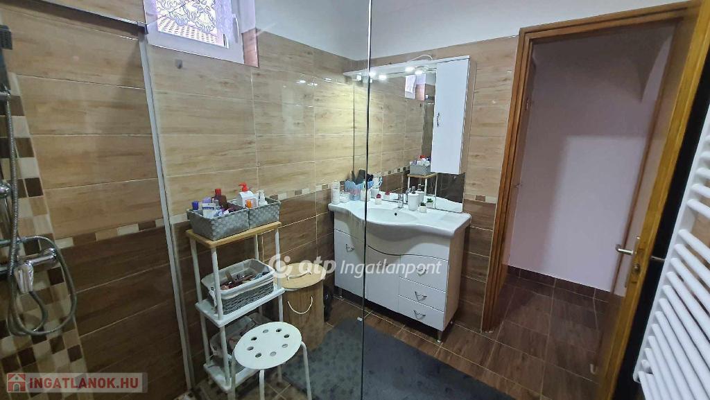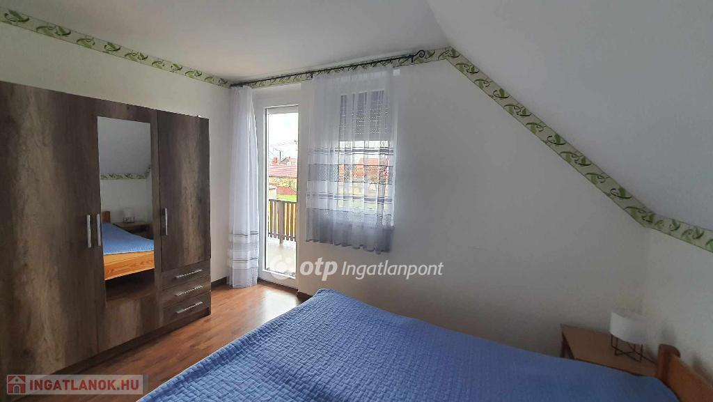 Mindkét lakószinten igényesen kialakított nappali, konyha étkezővel, 2-2 hálószoba, tágas, modern fürdőszoba lett kialakítva. Az alsó szinten hangulatos fedett terasz, a felső szinten pedig az egyik szobából megközelíthető fedett erkély van. Szuterén szinten helyezkedik el egy tároló és egy olyan helyiség, amiben helyet kapott a vegyes tüzelésű kazán és a gázkazán, valamint a bojlerek. A házhoz összefüggő melléképületként garázs, tároló és jelenleg lakóhelyiség ( Wc, fürdő, kiskonyha, háló) kapcsolódik. Udvara rendezett, sütögető helyet is kialakítottak a terasszal szemben. Igényes, precíz kivitelezések és megkímélt falak, bútorok, és gondosan tisztán tartott terek jellemzik.