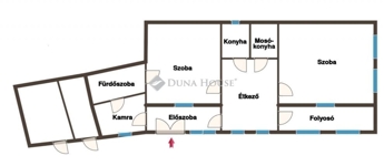 Az ingatlan helyiségei:2 szoba,konyha és étkező,fürdőszoba,mosókonyha külön tusolóval, előszoba és világos folyosó. A ház az 1950-es években épült vegyes (vályog és tégla) falazattal, száraz, nem vizesedő szerkezettel. Jelenlegi állapotában is lakható, ugyanakkor igény esetén könnyen felújítható és saját ízlésre alakítható.A fűtés konvektorokkal és vaskandallóval megoldott.