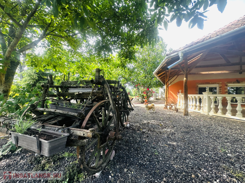 A tanyán található egy 236 négyzetméteres családi ház, amely műanyag kétrétegű nyílászárókkal, minőségi burkolatokkal, berendezetlen állapotban került értékesítésre. Az épület falazata tégla, illetve vályog, szigetelését tekintve 15 cm.