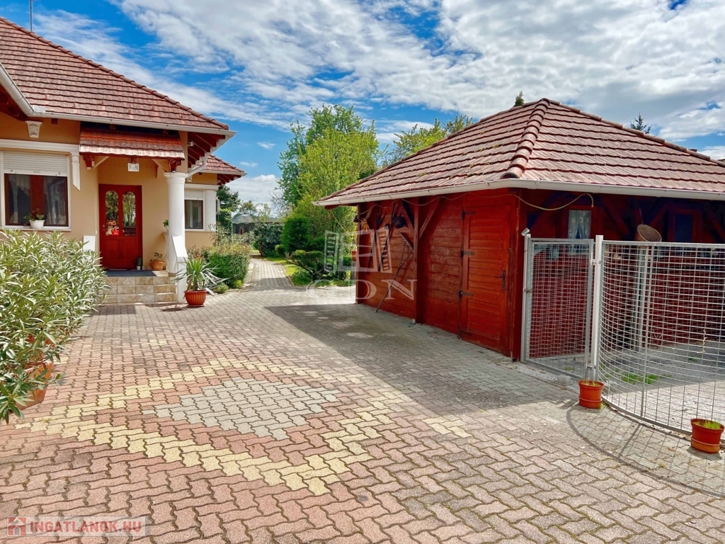 Az ingatlan lakóterülete 290 m2, és kétlakásos kialakításának köszönhetően ideális nagycsaládok, több generáció együttélésére, vagy akár vendégházzal kombinált nyaralóként is kiválóan hasznosítható. A házhoz tartozik egy kerti medence, egy dupla garázs, valamint egy különálló faház, amely kiválóan alkalmas tárolásra vagy raktárként.