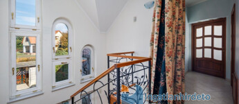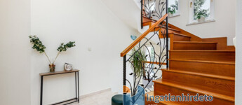 Elhelyezkedése: Belterület Tájolása: Dél-nyugai tájolású Állapota: Használt - felújított Komfort besorolása: Luxus komfortos Építési éve: 2001 Alapterülete: 334 m2 Telekterülete: 868 m2 Szobák száma: 4 + 3 szoba Felújított: Felújított Felújítás éve: 2016 Közművek: Gáz, Víz, Villany, Csatorna Fűtés módja: Gáz, Fa Fűtés típusa: Kandalló, Napkollektor, Padlófűtés Homlokzat állapot: Újszerű Építési mód: Tégla Tető formája: Magas Tető anyaga: Cserép Parkolási lehetőség: Garázsban Kilátás: Udvari kilátás, Tóra nyíló kilátás Napelem: Van Teljesítmény(kW): 1,5 Jellemzői: Alacsony rezsi, Csendes környék, Jó közlekedés, Két bejárat, Ikergarázs, Légkondicionáló, Étkező, Udvari terasz, Beépíthető tetőtér, Beépített szekrény, Beépített konyhabútor, Kert, Kerítés, Ipari áram, Riasztó, Parketta burkolat, Egyedi vízóra , Zöldterület, Jó közbiztonság Energetikai besorolás: C Egyéb jellemzők: Pince Tv, Internet: Kábeltévé, Internet, Vezetékes telefon Közelben: Iskola, Óvoda, Autóbuszállomás, Orvosi rendelő, Bolt, Gyógyszertár, Postahivatal, Vendéglátó egység Rezsi költség(Ft): 50000 Terhelések: Tehermentes ingatlan Eladásra vonatkozó információk: Azonnal beköltözhető
