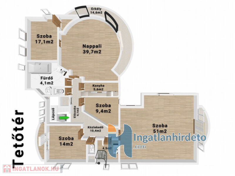 Az ingatlan alkalmas akár a fenti szint teljes leválasztására is, illetve azok önálló albetétként történő hasznosítására is.