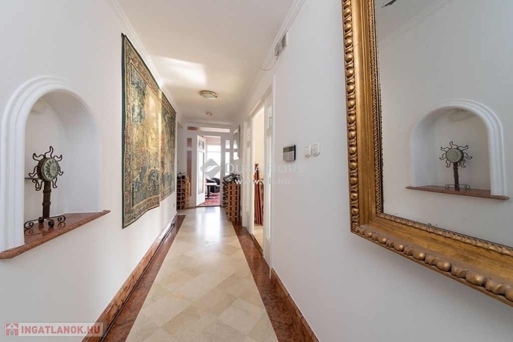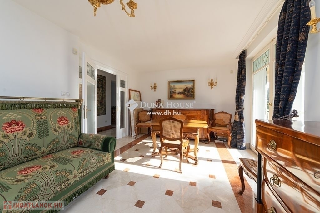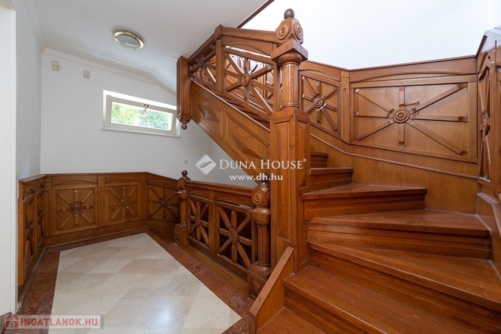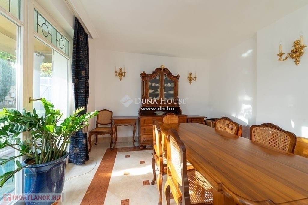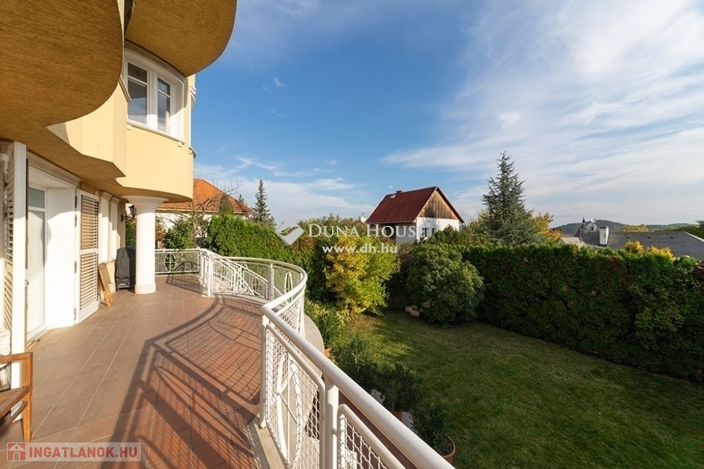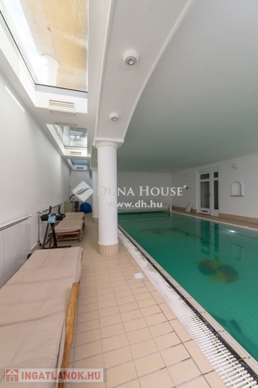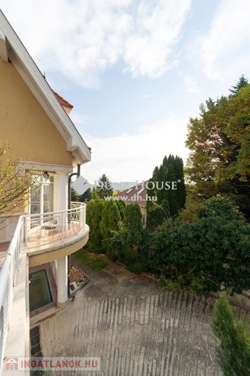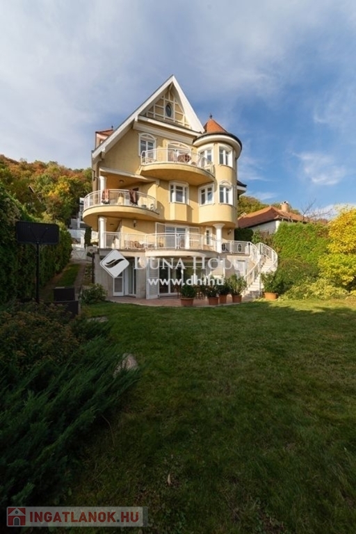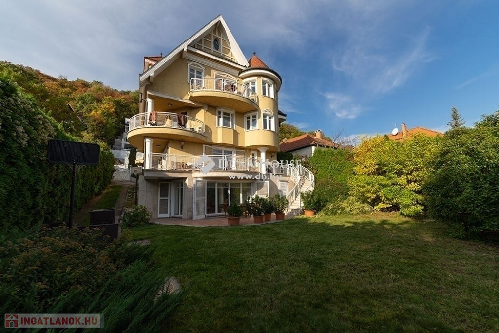 BUDALIGET KÖZKEDVELT RÉSZÉN, PANORÁMÁS, MEDENCÉS, HÁROM GENERÁCIÓS VILLA!!Budapest II kerület Budaliget városrészben, a Francia iskola közelében, a Remetehegy oldalában teraszosan beépített telken, az 1990-es években klasszikus stílusban épült, kitűnően karbantartott, a Pilisi hegyekre örök panorámás villaépület eladó.Az épület nettó 507 m2 , bruttó 650 nm alapterületű 4+2 (tetőtér, gépház) szintes, a hozzá tartozó telek 660 m2 (19mx 35m,). A villaépület tagozódása a következő:Az utca szinten levő előkertből nyíló földszinten található a bejárat, közlekedő,egy dolgozószoba, egy hálószoba, fürdőszoba és külön WC-mosdó, egyszalon és egy könyvtárszoba erkéllyel. Gyönyörű faragott fa lépcső köti össze a ház É-Ny-i sarkában a teljesen szeparálható emeleteket. A földszinttől egy szinttel lejjebb található az 5 állásos garázs, a kazánház, egy előszoba, egy nappali étkező, egy konyha, egy vendég hálószoba, fürdőszoba és külön WC/mosdó.Egy szinttel még lejjebb a kert szinten wellness részleg: fűtött vízforgatós, ellenáramoltatóval felszerelt 10mx4m medence (alatta gépház szint), öltöző, tároló és fürdőszoba, teljes szélességében eltolható üvegajtókkal megnyitva a hangulatos, napos, szépen gondozott, magas tujákkal körbevett kertre. A ház teraszosan a hegyoldalra simuló beton oldala, dupla szigetelést kapott.Az emeleten Miele gépekkel felszerelt konyha étkezővel, nappali panorámás erkéllyel, három hálószoba, egy Ravak sarokkádas fürdőszoba, külön WC-mosdó.A jelenleg nem használt, Velux tetőtéri ablakokkal, víz-, és elektromos kiállással ellátott kb. 90 m2 (1.5 m feletti terület) tetőtér beépíthető. A ház körbenapozott, elegáns állítható fa zsalugáter ajtók és reluxák védik a naptól. Az épületben egyedi tervezésű, rendkívül dekoratív finn vörösfenyő ablakok és nyílászárók kerültek beépítésre. Mindkét konyha beépített bútorokkal, tűzhellyel, elszívóval, mosogatógéppel és hűtővel felszerelt. A hálószobákban és egyéb helyiségekben beépített szekrénye segíti a tárolást.A ház nagy részében padlófűtés van, míg a hálószobákban radiátorok biztosítják a meleget. A helyiségek burkolata funkciójuknak megfelelően változatos, faparketta, szalagparketta, kő, csempe és szőnyegpadló egyaránt megtalálható. A teraszok kültéri járólappal burkoltak. A házban továbbá központi porszívó, kiépített vízlágyító rendszer, kiépített riasztó és wi-fi rendszer került beépítésre. A kert parkosított, öntözőrendszerrel ellátott. Az ingatlanban elektromos kapu és elektromos garázsajtó üzemel.Közlekedése kiváló, a Hűvösvölgyi villamos végállomás és P+R 5 perc alatt, SzéllKálmán tér 25 perc alatt elérhető. Buszmegálló 5 perc séta. HÜVI Bevásárlóközpont,LIDL, SPAR,,TECO-Express, posta, gyógyszertár, óvodák, bölcsődék, iskolák mind megtalálhatók a közelben. Csendes, nyugodt zöldövezet, távol a város zajától, de mégis közel mindenhez. Az ingatlan kitűnő elhelyezkedése végett kiváló befektetés, a szintek szeparálhatósága miatt pedig kiválóan alkalmas több generációnak és követségei rezidenciának is.In Budapest II district, Budaliget area, near the French school, on a terraced plot onthe side of Remete Hill, a well-maintained villa , built in classical style in the 1990s,with an eternal panoramic view of the Pilisi Mountains is for sale.The building has a net floor area of 507 m2 (without the attic and engine room), agross floor area of 650 m2, 4 + 2 (attic, engine room) floors, the plot is 660 m2 (19mx35m,). The division of the building is as follows: On the ground floor, which opens from the front garden on the street level, there isan entrance, a corridor, a study, a bedroom, a bathroom and a separate toilet, alounge and a library room with a balcony. A beautiful carved wooden staircaseconnects the fully separable floors in the north-west corner of the house. One level below the ground floor is the 5-car garage, the boiler room, an entrancehall, a living-dining room, a kitchen, a guest bedroom, a bathroom and a separatetoilet / sink.One level further down on the garden level wellness area: heated, circulating,counter-current equipped 10mx4m pool (with engine room a further level down),dressing room, storage and bathroom, opening with full width sliding glass doors ontothe cosy, sunny, well-kept garden surrounded by high thuja bushes for privacy. Theterraced house rolls down on the hillside built on a concrete base with doubleinsulation.Upstairs Miele kitchen with dining area, living room with panoramic balcony, threebedrooms, a bathroom with Ravak corner bath, separate toilet.The currently unused approx. 90m2 attic with fitted Velux attic-windows, water andelectric outlet, needs internal cladding.The house is very bright, surrounded by elegant adjustable wooden shutter doorsand blinds to protect from the sun. The building has uniquely designed, highlydecorative Finnish larch windows and doors.Both kitchens have built-in furniture, a stove, extractor, dishwasher and refrigerator.Built-in wardrobes in bedrooms and other rooms help with storage.Most of the house has underfloor heating, while the bedrooms have radiators. Thefloor covering of the rooms is varied according to their function, wood parquet, stripparquet, stone, tile and carpet floor can all be found. The terraces are covered withoutdoor tiles.The house also has a central vacuum cleaner, a built-in water softening system, analarm and a wi-fi system. The garden is landscaped and equipped with an irrigationsystem. The property has an electric gate and an electric garage door.Great transport: Hűvösvölgy tram terminal and P + R can be reached in 5 minutes,Széll Kálmán square in 25 minutes. Bus stop 5 minutes walk. HÜVI Shopping Center,LIDL, S