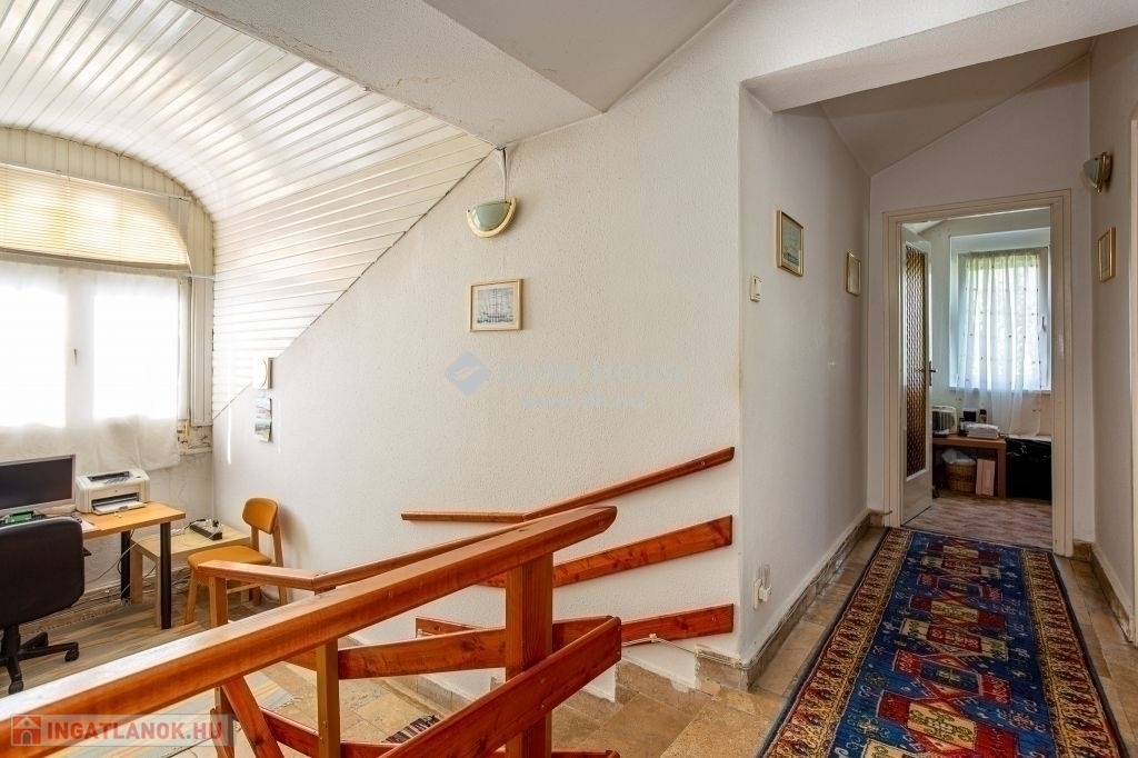 Amely ideális választás lehet a nyugodt, csendes, kertvárosi életet kedvelők számára. Az ingatlan egy csendes, zöldövezeti utcában helyezkedik el. Az épület tervezésénél figyelembe vették a praktikus, és élhető tereket, ami a teljes kényelmet szolgálja az itt élők számára. A ház különlegessége az elszeparált két lakrész, és a romantikus kert, amelyben hatalmas fenyőfák találhatók. A teraszról csodálatos panoráma tárul elénk.