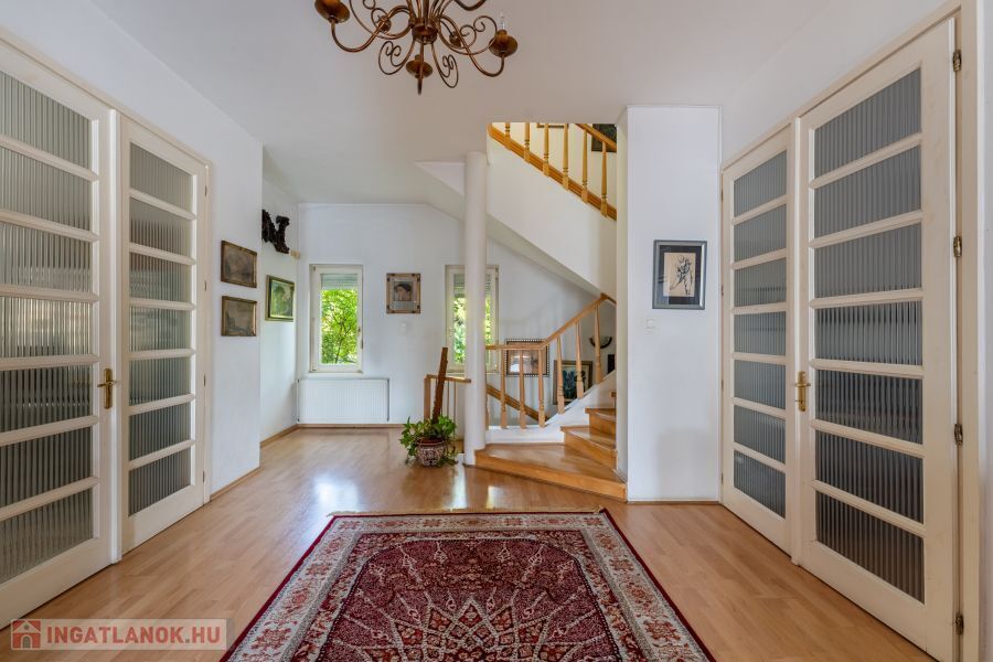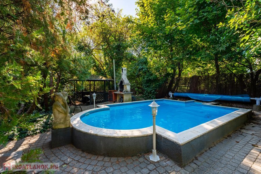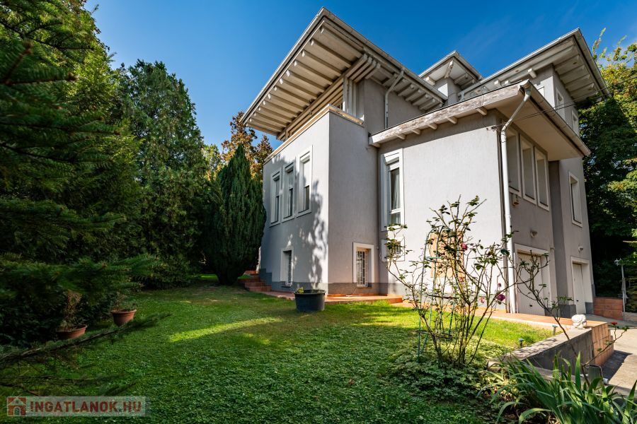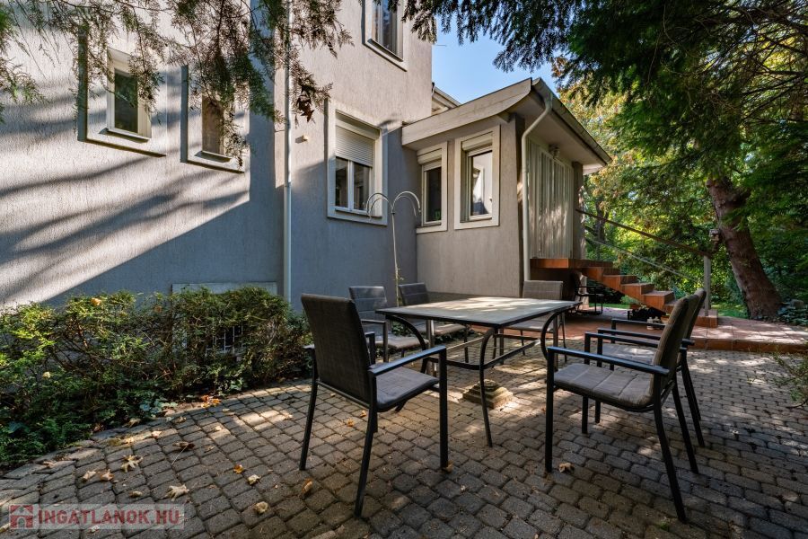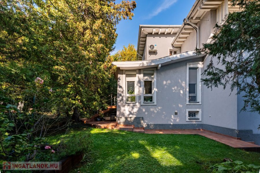 A villa 3 szintes, egy gondozott, intim kertben áll ahol egy hőszivattyúval fűtött kültéri medence is helyet kapott. Tágas terek, napfény, csodálatos miliő jellemzi az ingatlant. Jó beosztású, élhető terek vannak a házban nagyon jól elkülönül a személyes és a közös élettér. A nappaliból nyílik az intim nyáron árnyékos kert. Az emeleti erkélyről csupa zöldre látni.