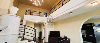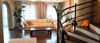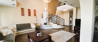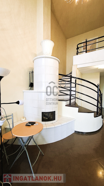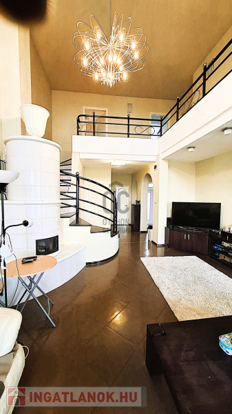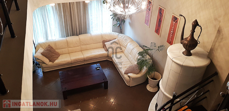 Fent: Hatalmas, felújított, modern lakás, különleges, átriumokkal, amik nagyvonalú tereket biztosítanak. A lakás a konyha-étkező valamint nappali mellett három hálószobával rendelkezik a felső szinten.