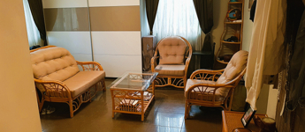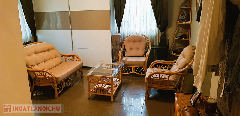 Középen: Egy átlagos állapotú, teraszos nappali + 1 hálós lakás, ideális önálló lakásnak, vendégeknek vagy irodának.