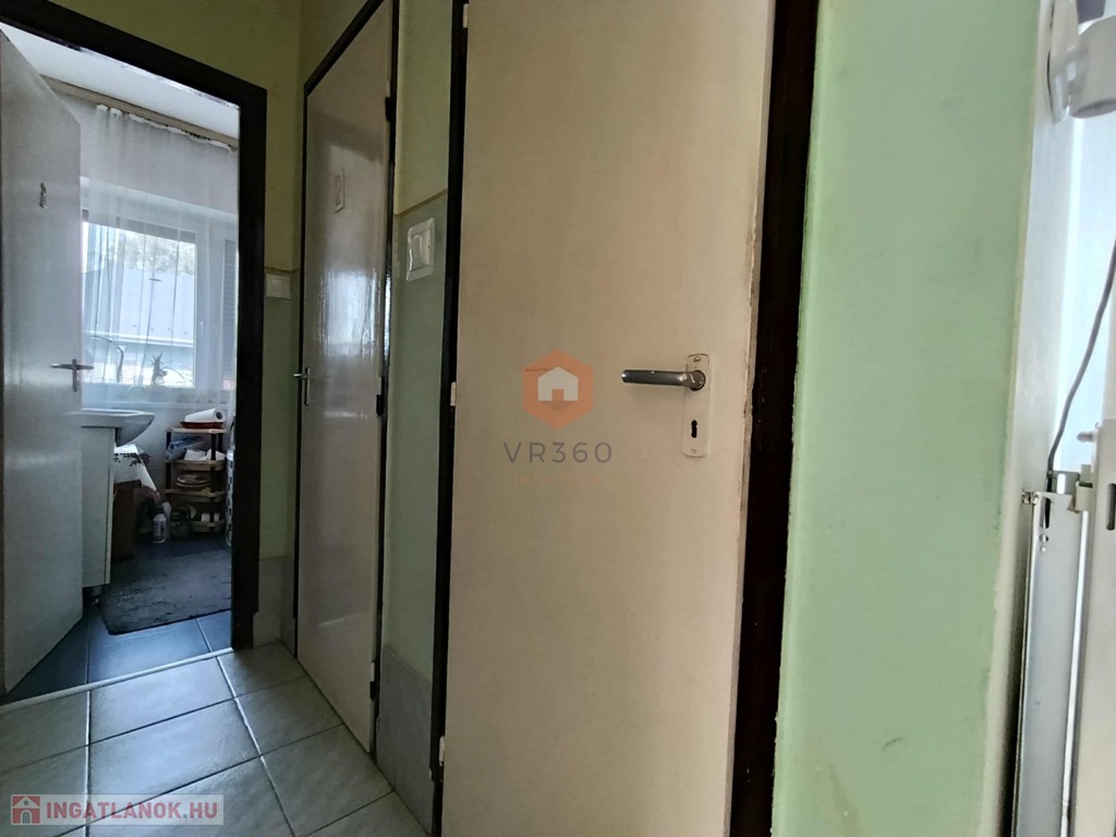 A konyha után a folyosó, végén a földszinti fürdő + külön WC, és egy 1 m²-es kamra.