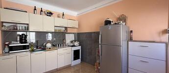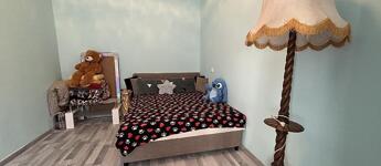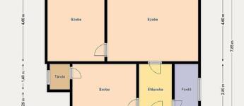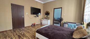 A nagyobb ház kb. 58 m², 2+1 fél szobás, 10 cm külső szigeteléssel. Szintén gázkonvektoros fűtés. A tetőtér beépíthető, így bővíthető akár több szobával.