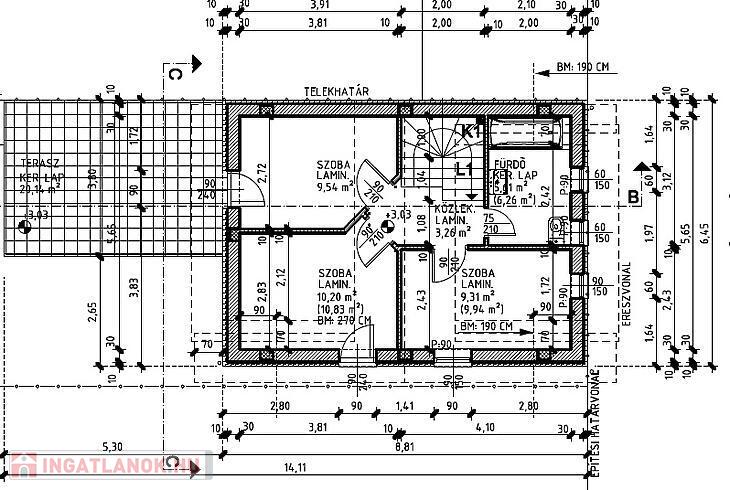 Az ingatlan kétszintes lesz, 30-as porotherm téglából épül, amelyet egy 10 cm-es grafitos szigeteléssel is ellátnak majd.