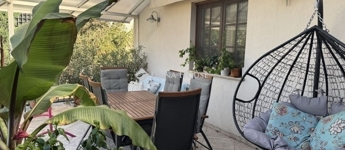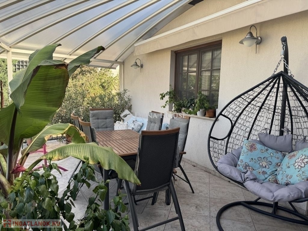 A teraszon automata árnyékoló van a terasztető alatt.