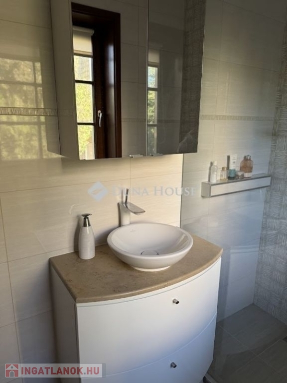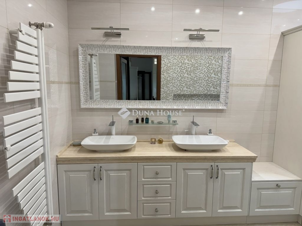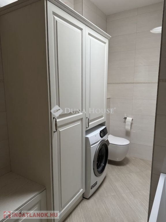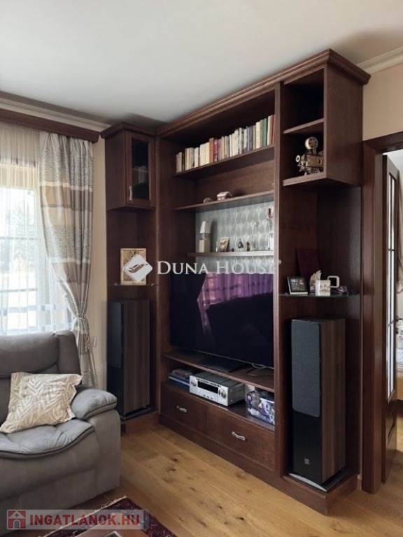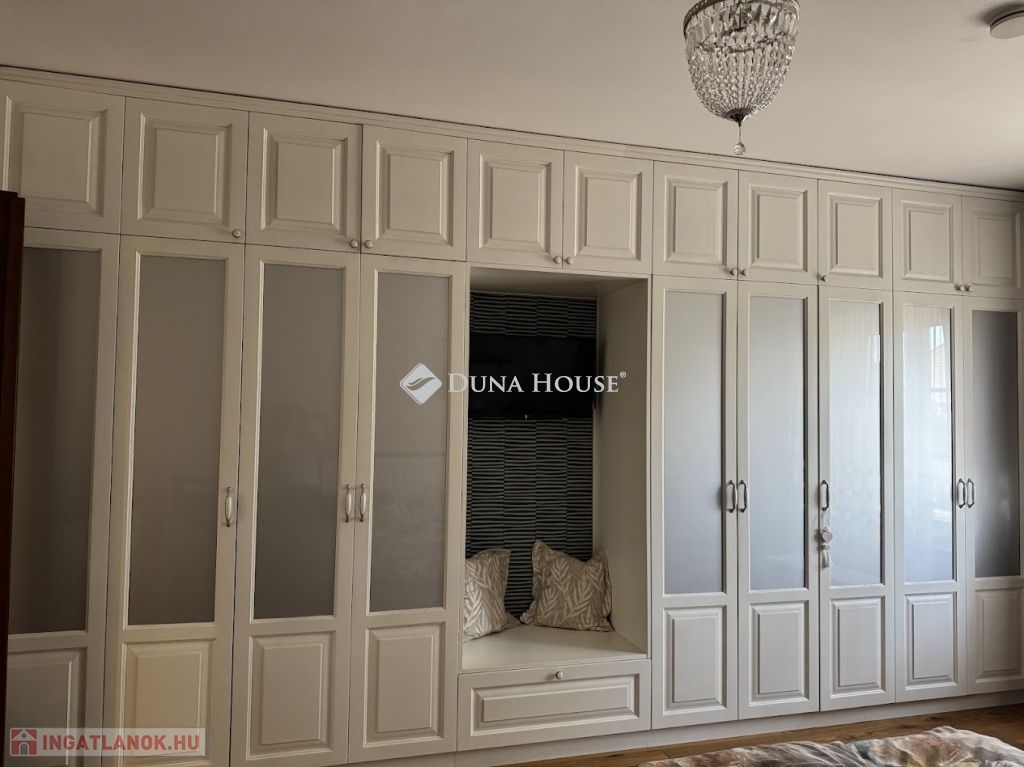 A szuterénban vízlágyító gépészet került telepítésre. A konyhabútor toldásmentes tölgyfából készült, beépített Siemens és Bosch gépekkel, borhűtővel. 2 hálószobában szintén tölgyfa frontos beépített szekrénysorok vannak, a nappaliban beépített bútor a tv-nek, hangrendszernek, az előszobában is fa frontos beépített bútor a kabátoknak, cipőknek. A kamrában polcrendszer került kialakításra.