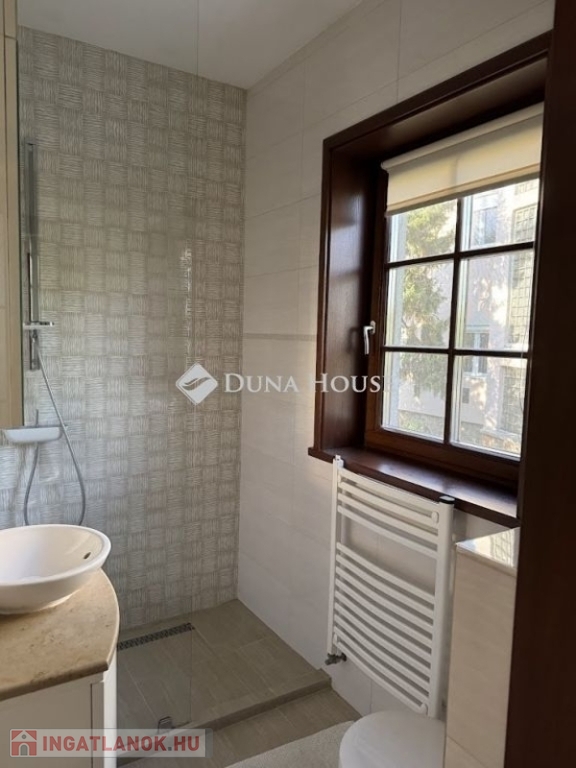 A szobákban egységes borovi fenyőből készült beltéri ajtók vannak. A fürdőszobákban Villeroy&Boch, Hansgrohe szaniterek kerültek beépítésre, a nagyobb alapterületű fürdőben a beépített szekrények tölgyfa frontosak, travertin mészkő munkalappal.