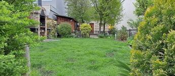 Az öntözőrendszerrel ellátott hangulatos kerttel egy 21 m2-es vörösfenyőből készült terasz köti össze a házat, ahol az árnyékolás egy elektromos napellenzővel szabályozható.