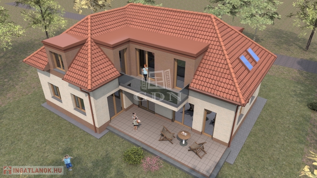 Budapest XVI. kerületében, Sashalom egyik legkedveltebb, csendes, kertvárosias részén kínáljuk eladásra ezt a korszerű, új építésű családi házat, amely egy 617 m²-es telken helyezkedik el, az Lke-1/XVI/SZ4 övezeti besorolásnak teljes mértékben megfelelően.