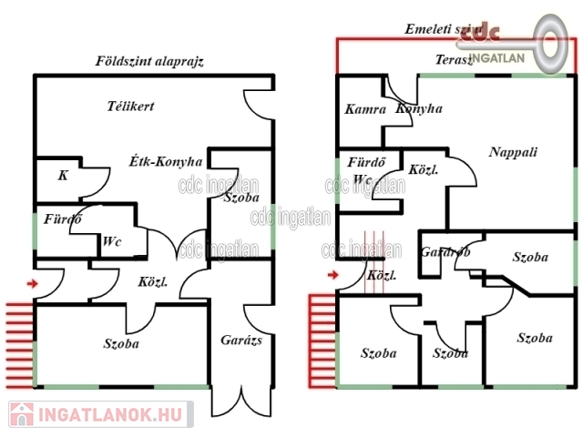 Akár több generáció összeköltözésére is alkalmas lehet, de befektetésnek is kiváló a két külön kialakított lakrész miatt. Elhelyezkedését nézve pedig vállalkozásnak is tökéletes helyszínt nyújthat. Az ingatlan 824 m2-en helyezkedik el, ennek több mint a fele a szabad zöld terület. A 215 m2 alapterületű, kétszintes családi ház szintenként ketté van választva, két külön bejáratú, 107 m2 lakásra, de igény esetén egybe is nyitható. Mindkét lakás külön gáz és villanyórával rendelkezik, így a költségek könnyedén szétválaszthatóak. Az ingatlan magába foglal összesen 5 hálószobát, 1-1 nappalit és konyhát és mindkét lakásban 1-1 fürdőszobát, külön álló mosdókkal. Két autó beállására alkalmas garázs is található benne. A földszinti lakrészben jelenleg két külön nyíló szoba, konyha, étkező, zuhanyzós fürdőszoba, különálló mellékhelyiség, kamra és egy hangulatos télikert találhatóak. A fűtésről és melegvízről kombicirkó gondoskodik. Az emeleti lakrész külső lépcsőn közelíthető meg. Jelenleg négy szoba, nappali, konyha, zuhanyzós fürdőszoba, külön mellékhelyiség, közlekedő és egy nagyobb méretű lépcsőház galériával kínál kényelmet az itt lakóknak. A konyhából nyílik egy nagyobb méretű emeleti terasz. A fűtésről gázkazán, a melegvízről gázbojler gondoskodik. A 824 m2-es telken egy kinti elkerített terasz is kiépítésre került, mely alatt pince is található, mely kiváló lehetőséget biztosít tárolásra. Az épület teljes mértékben használható állapotú, igény szerint esztétikai felújítást igényel. Nagyon jó infrastruktúrával ellátott környék, buszmegálló 3-5 perc sétára található, közelben Spar, orvosi rendelő, gyógyszertár, több bank, bölcsőde, óvoda, iskola.