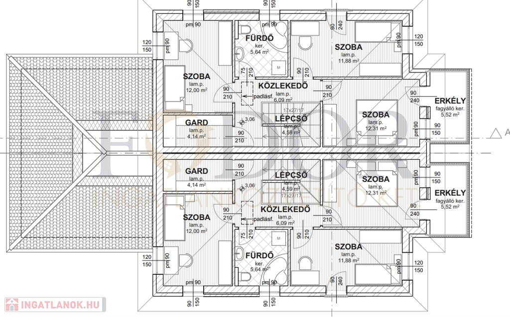 B jelű lakás bruttó 130 m2, 15 m2 terasz, 2,5, 3,8 m2 erkély, 400 m2 privát telekterület 139,9 Millió Forint