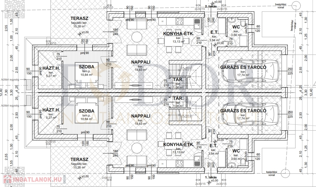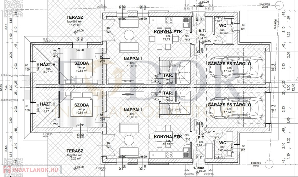 • 30 cm-es főfal + 15 cm homlokzati szigetelés a maximális energiahatékonyságért.