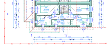 Az emeleten három hálószoba, közlekedő, fürdőszoba és háztartási helyiség kerül kialakításra.