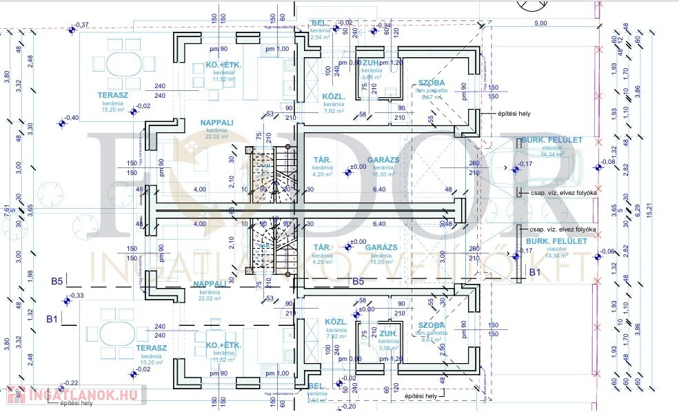 - Az ikerház lakásai dupla téglafallal kapcsolódnak egymáshoz, közöttük 5 cm szigeteléssel, így az áthallás minimális