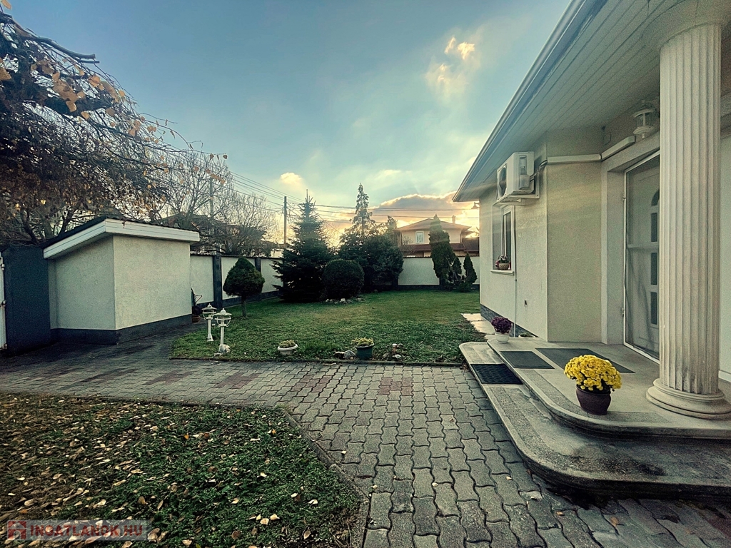Eladásra kínálunk a XVIII. kerület egyik kiemelkedően jó adottságú, nyugodt és rendezett utcájában, az Esze Tamás utcában egy 163 m²-es, 1997-ben épült, tehermentes, minden közművel ellátott, klimatizált, 4 szobás családi házat, amely egy 872 m²-es, napfényes saroktelken helyezkedik el.