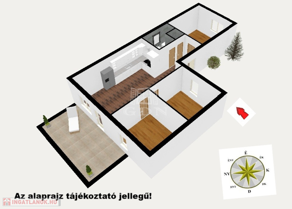 Az AMERIKAI KONYHÁS-NAPPALI napfényes, tágas térrel rendelkezik, ideális NAGYCSALÁDOSOK számára is. HÁROM KÜLÖN NYÍLÓ hálószoba, KÜLÖN FÜRDŐSZOBA ÉS külön WC biztosítja a kényelmet.