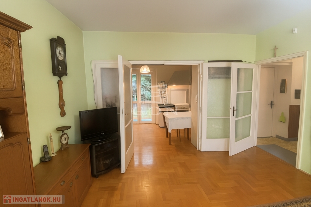 A konyha-étkező és a nappali között kétszárnyú ajtó található, amely igény esetén lehetővé teszi a konyha elkülönítését.