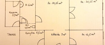 - három szoba (20,25 m²; 20,25 m² és 12,5 m²),