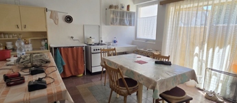 A lakórész egy szintes, 120 nm alapterületű, részben bútorozott, elosztása: előszoba, közlekedő, 3 szoba, konyha, kamra, étkező, fürdőszoba káddal és zuhanykabinnal, külön WC. Az udvar felé fedett terasz.