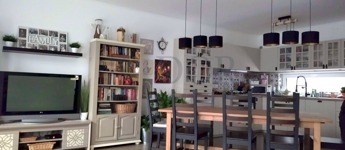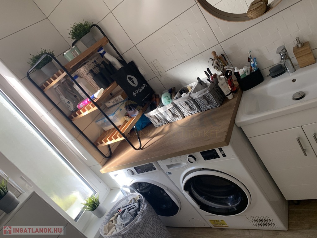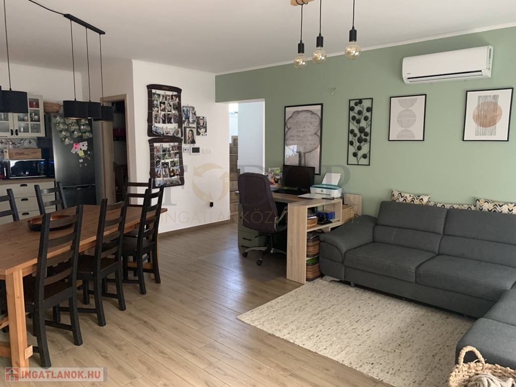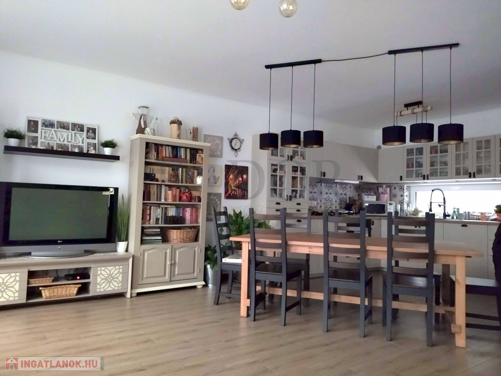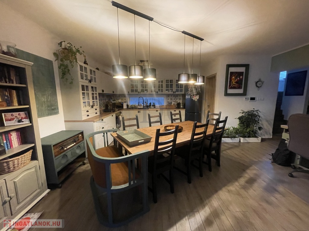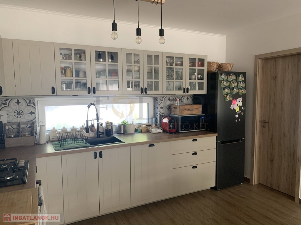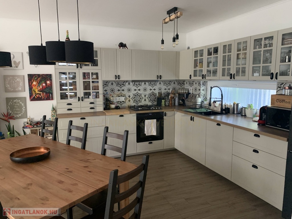 Az 119 m²-es, két szinten elhelyezkedő otthon átgondolt térszervezése ideális választás akár nagyobb család számára is. A tágas, természetes fényben úszó amerikai konyhás nappali a ház szíve, amelyhez teljesen gépesített, beépített konyha tartozik.