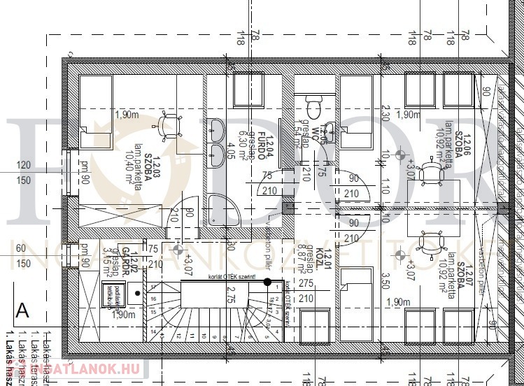 • Az ikerházak érintkezésénél dupla falazás, a hanghatások teljes elkerülése érdekében.