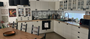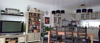 119 m²-es lakótér: 4 hálószoba, amerikai konyhás nappali, beépített és gépesített konyhával, galéria, kamra.