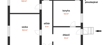 Az épület alatt 40 m²-es pince helyezkedik el, amely további tárolási lehetőséget biztosít.