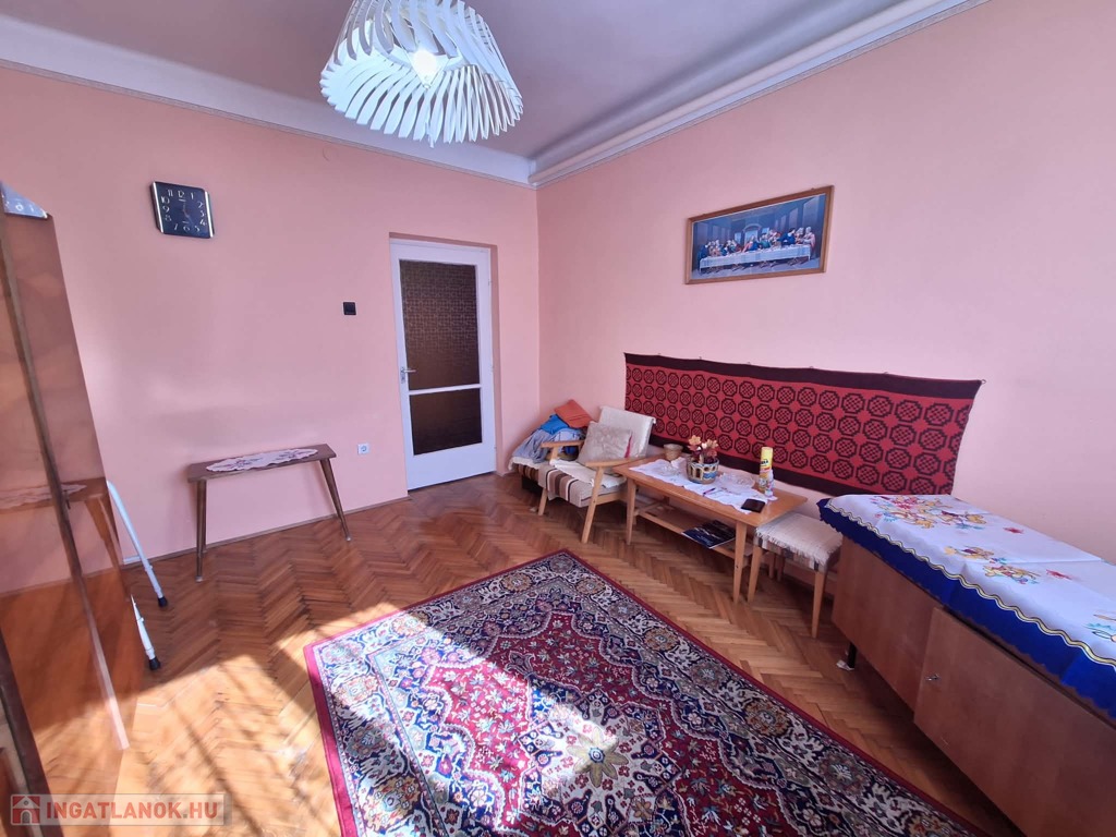 A szobák megkímélt állapotú faparkettával, a többi helyiség járólappal burkolt, a falak festettek.