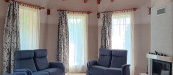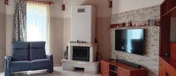 A nappaliban található hangulatos kandalló, valamint a kondenzációs gázkazán gondoskodik a melegről, padlófűtéssel és radiátorokkal kombinálva.