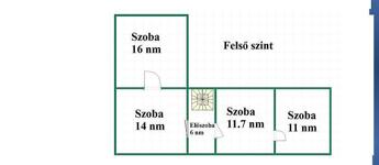 Elosztását tekintve a földszinten: 2 előszoba, 3 szoba, konyha, fürdőszoba és wc található. Az emeleten 1 előszoba és 4 szoba található.