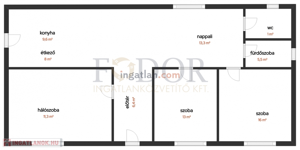 Tágas, Praktikus Elrendezés: A jól átgondolt belső tér egy tágas, világos előtérből indul (6,4 m²), amelyhez egy funkcionálisan berendezett, 17,6 m²-es konyha + étkező és egy barátságos 13,3 m²-es nappali kapcsolódik. A három külön nyíló szoba (egy nagyobb 17,6 m², és két kisebb 11,3 m², 13 m²) ideális elosztást biztosít hálószobának, dolgozószobának vagy gyerekszobának.