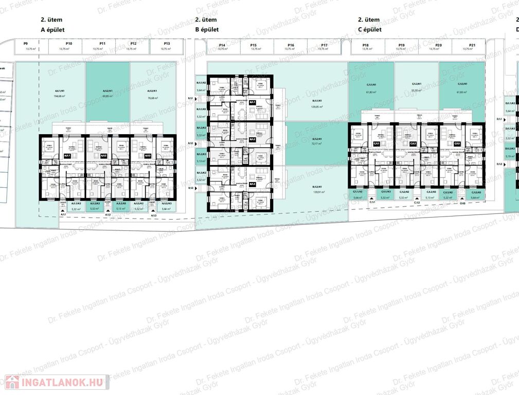 A B tömb szélső lakásainak fűtéskész ára: 66,5 M Ft /db