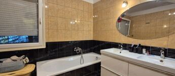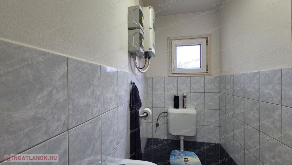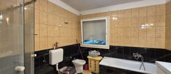 Fürdőben: kád, zuhanyzó, WC, bidé, törölközőszárítós radiátor, ablak