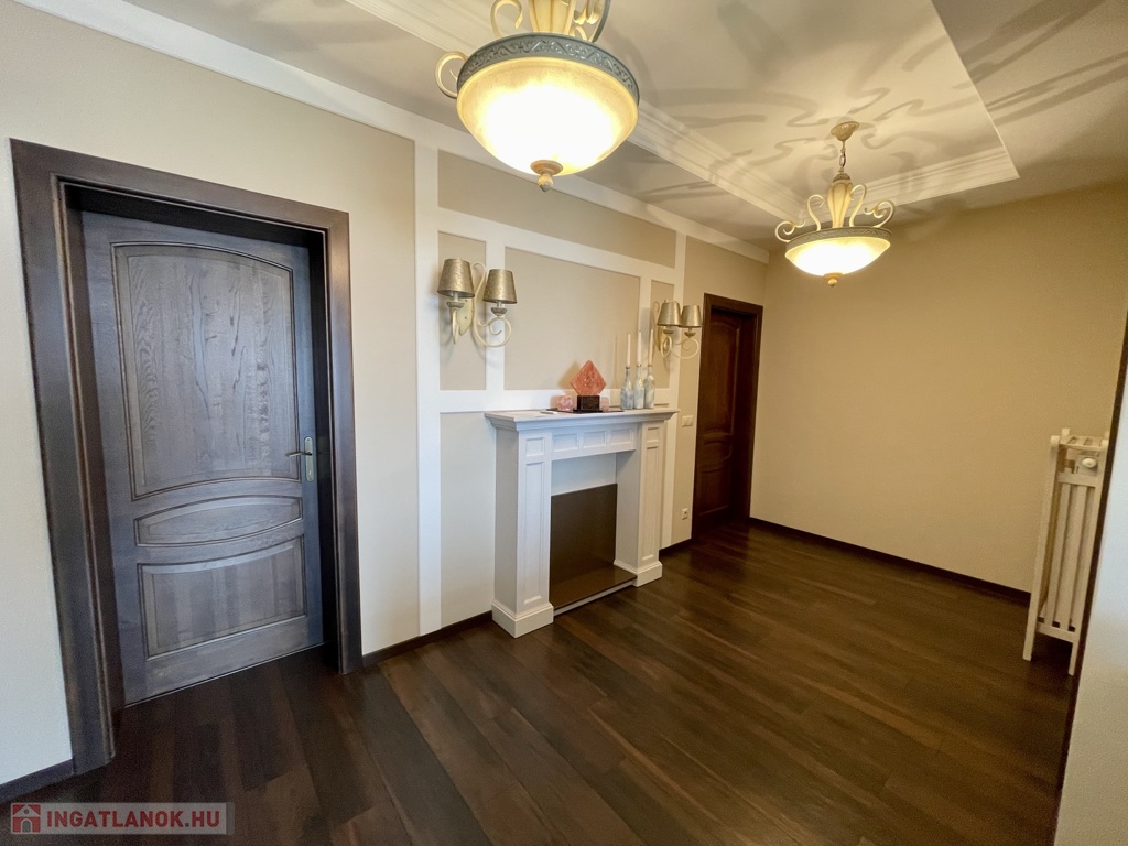 Hévíz csendes panorámás utcájában kínálunk eladásra egy egyedi tervezésű és egyedi kivitelezésű, 1033 m2-es telken, 2015-ben épített 274 m2-es öt szobás családi házat! A házhoz egy nagyon szépen parkosított és gondozott diszkrét kert tartozik. A ház fűtési rendszere két körös: padlófűtés és radiátorok, illetve a használati meleg vízre napkollektor is rendelkezésre áll. A házban egy elegáns és jól felszerelt konyha található, gránit munkapulttal. A konyha és a nappali egyben van. A nappaliban egy szép kandalló is helyet kapott. A földszinten található még egy dolgozószoba, gardrób, vendég WC, a fűtés és melegvíz gépészeti terme és garázs, műhely egyben. Az emeleten lett kialakítva három hálószoba két fürdőszoba, gardrób, mosókonyha és szauna. A nyílászárók is egyedi méretre gyártott szigetelt műanyagok szúnyoghálóval és automata redőnnyel szereltek. A szobákban mindenhol egyedileg tervezett és gyártott olasz bútorok találhatók. A szobák laminált parkettával, a többi helyiség igényes kerámia lapokkal burkoltak. Minőség és stílus egyben! A tófürdő egy kilométerre, üzletek, éttermek ötszáz méteren belül, Keszthely és a Balaton 6-7 kilométerre, Bécs és Budapest egyaránt kétszáz kilométerre elérhető!
