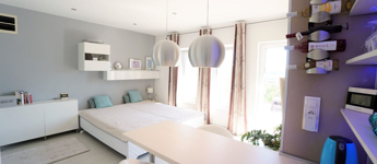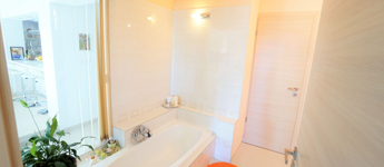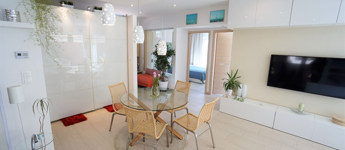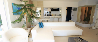 A földszinten található egy amerikai konyhás nappali, egy tágas, részben üvegfallal határolt fürdőszoba, ahol akár a kádból is nézheti a kedvenc filmjét. Továbbá két hálószoba , az egyikből közvetlenül egy panorámás teraszra lehet kilépni.
