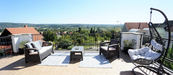 A szobákból kilépve egy óriási, közel 30nm-es panorámás teraszra jutunk.