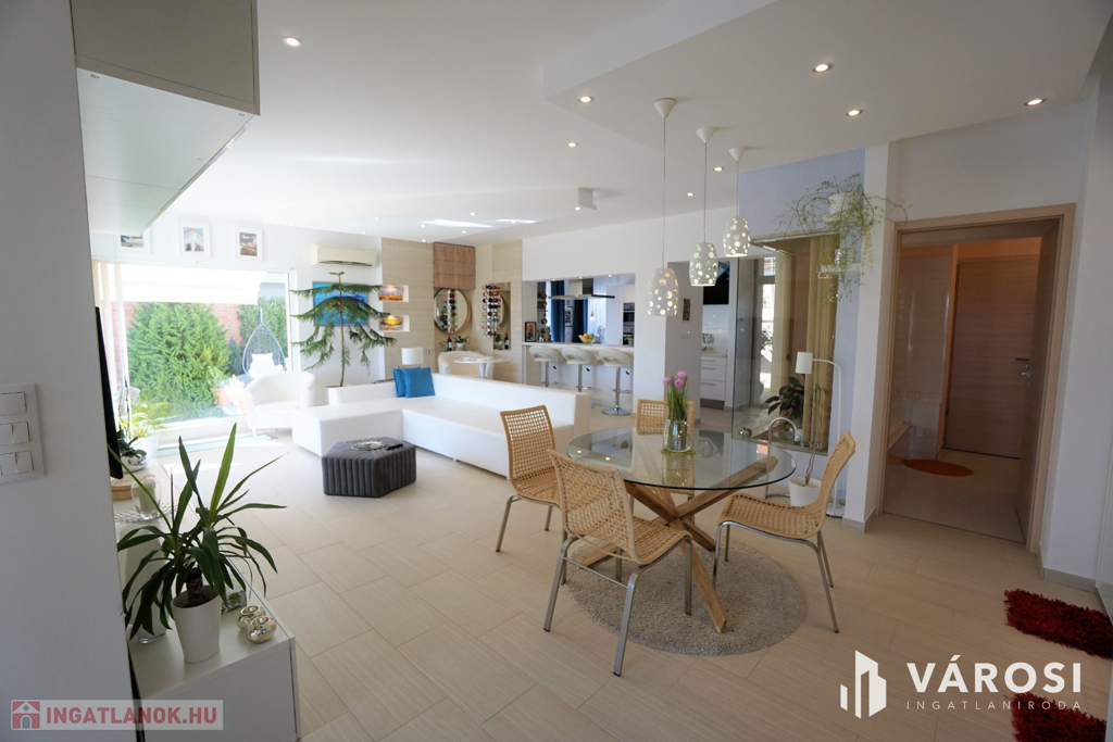 2018-ban, magas minőségben épült ez a különlegesen megtervezett, igényesen kialakított, három szintes 237 nm-es ház, mely egy 612 nm-es telken helyezkedik el. Minden helyiségben elegáns, modern stílus dominál. Ízléses kialakítás és berendezés, magas minőségű beépített anyagok, átgondolt helykihasználás jellemzi.