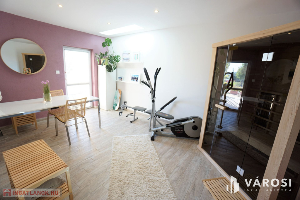 Itt két autó számára tervezett garázs várja új járgányait, ami mellett egy remek, utcafrontról is megközelíthető helyiség található, mely jelenleg relax szobaként/fitneszteremként használatos, de önálló bejárata miatt üzletszerű tevékenységre is alkalmas.