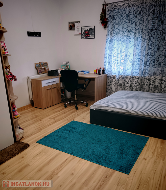 Az ingatlan jellemzői: A 110 m2- es ház 2006-ban, míg a tető 2022-ben teljes körű felújításon esett át, amelynek során új modern műanyag nyílászárókat, új villany- és vízvezetékeket, korszerű szerelvényeket építettek be, valamint a fűtési rendszert korszerűsítették. A födém szigetelésének köszönhetően az ingatlan energiahatékonysága kiemelkedő. Az alsó szinten egy tágas nappali-konyha, egy praktikus spájz és egy pince található, míg az emeleten három hálószoba, egy fürdőszoba és egy külön WC biztosítja a család kényelmét.