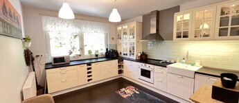 Kaposváron a Tüskevári városrészben a Könyves Kálmán utcában, 236 m2-es jó állapotú családi ház eladó. Az ingatlanban nappali, 3 szoba, 2 fürdőszoba - wc, mosókonyha, előszoba helyiségek találhatóak. Az épület fűtése és a melegvíz ellátása BOSCH kazánnal megoldott. 2020-ban az ingatlan teljes felújításon esett át, amelynek során a tulajdonosok kicserélték az összes nyílászárót 3 rétegű Rehau típusúra, valamint korszerűsítésre került a teljes fűtés rendszer és villanyhálózat, továbbá a lakóház homlokzat hőszigetelését is elvégezték. A házhoz tartozik két autó számára garázs, valamint egy 30 m2-es fedett terasz, valamint infra szauna is van. Telek: 720 m2