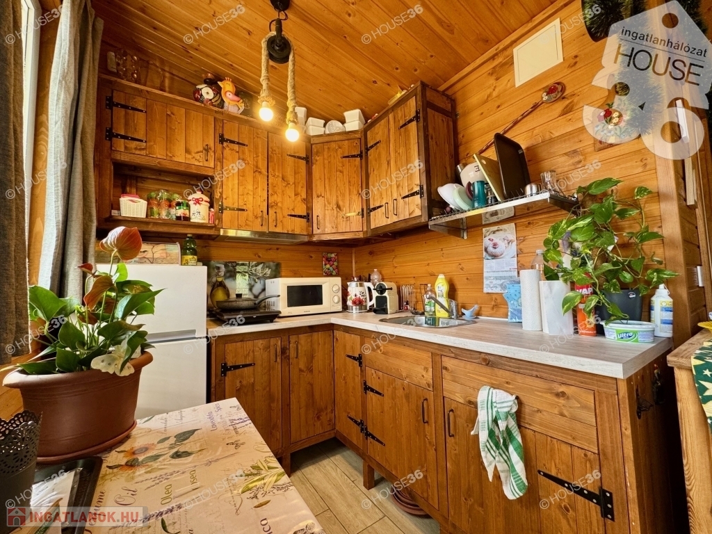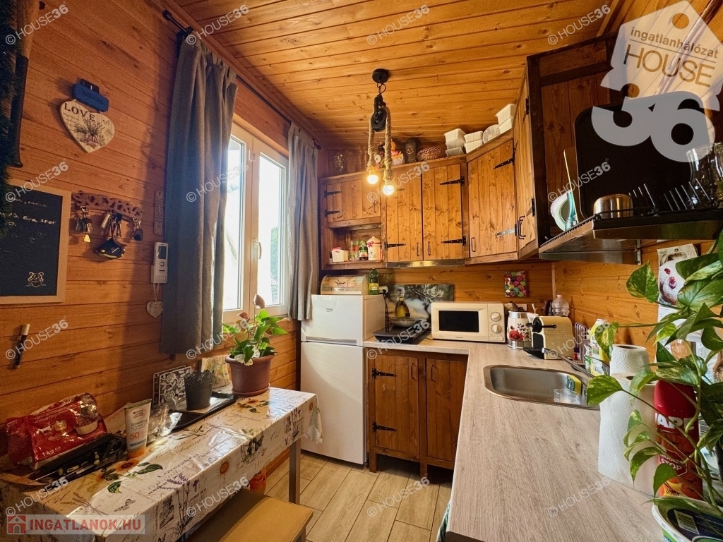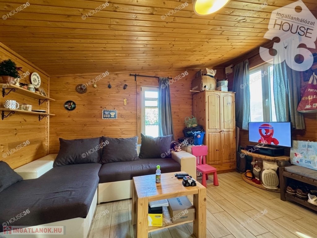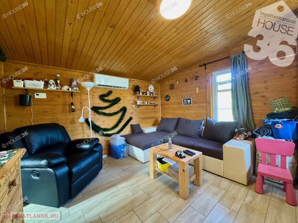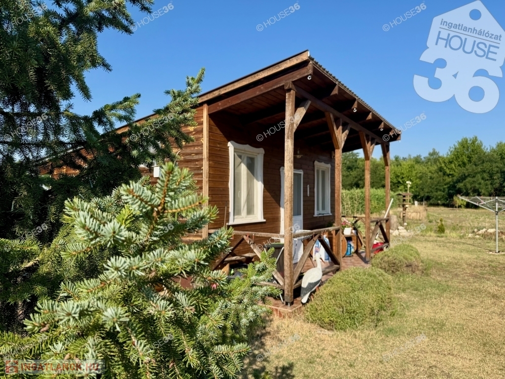 - szigetelt faház (27 m2) nagy (9 m2) terasszal -
