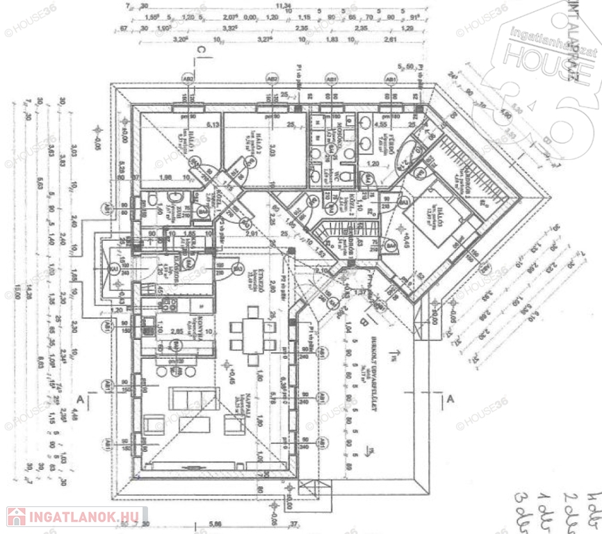 Nappali + 3 szoba