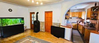A porotherm téglafalazatú épület kiváló elosztású, fűtését vegyestüzelésű kazánnal működő központi fűtés biztosítja.