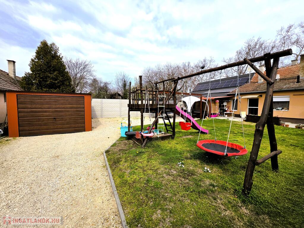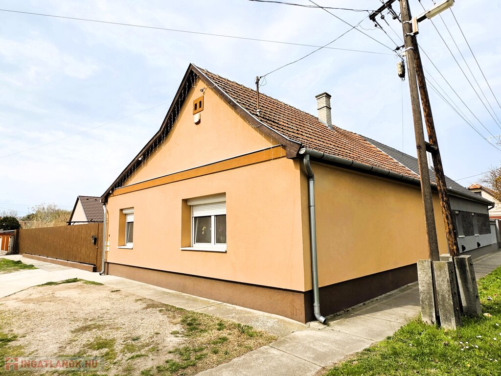 Kiskunhalas alsóvárosi részén, 415 m²-es saroktelken álló, 72 m²-es, jó állapotú családi ház várja új tulajdonosát. A vegyes falazatú, cseréptetős épület praktikus elrendezéssel rendelkezik: két külön nyíló szoba, konyha, fürdőszoba, előszoba és közlekedő áll rendelkezésre. A fűtésről gázkondenzációs kazán radiátorokkal és kandalló gondoskodik, a meleg vizet villanybojler biztosítja, míg a hűtő-fűtő klíma kellemes komfortot nyújt egész évben.